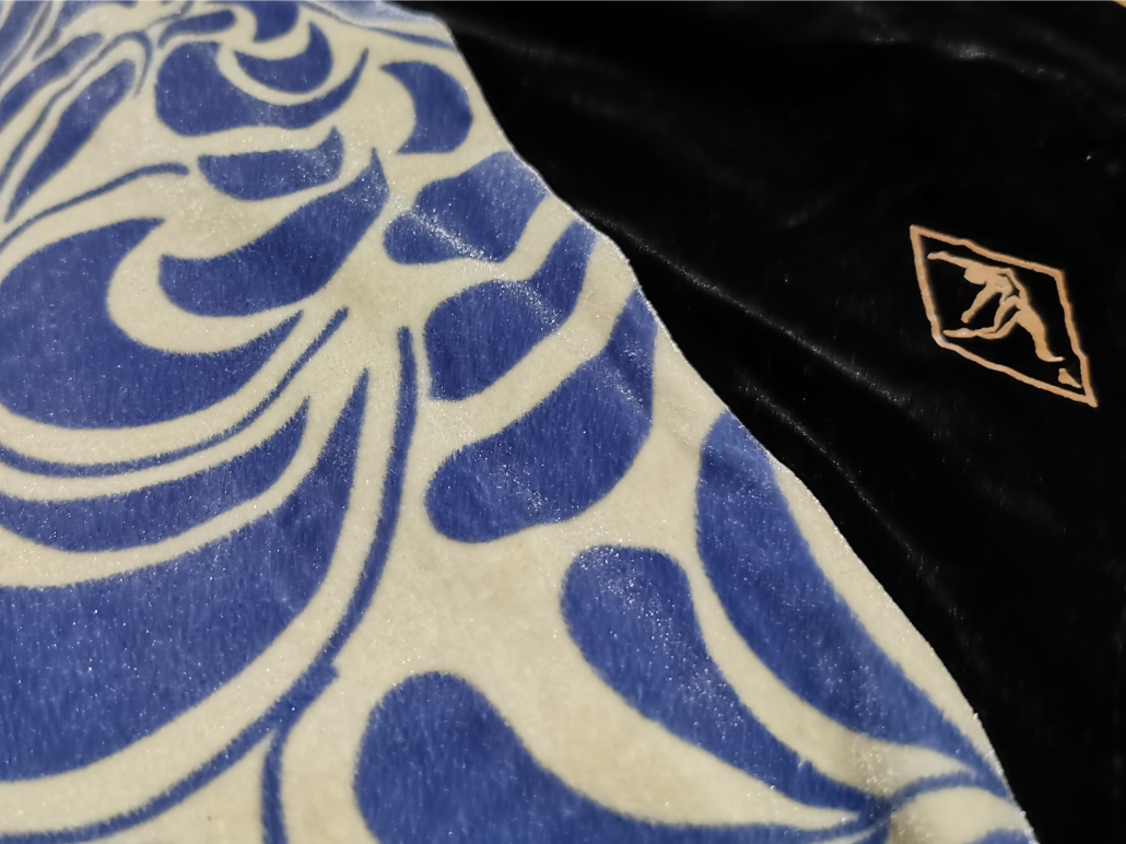 全面部分の拡大写真 剥がれやすいササキスポーツのアイコンだが、この個体では比較的しっかり残っている。 それにしても、蔦模様のプリントベロアは黄ばみやすいのだろうか。 明らかに黄変したように見える・・・ |