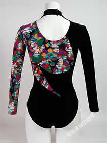 このレオタードはササキスポーツ1995年のカタログモデルで、その特色あるネック形状が物語っている通り、新体操向けにデザインされたレオタードである。 当時のカタログの中で「曲線的に連続する動きを、もっと美しく、もっと大胆に見せる新体操用のレオタード」という文言と共に、 「演技に変化をもたらすアシンメトリーなバランスを中心に、ポイントとなるネックバリエーションをさらに広げました」と紹介している通り、 左右非対称の大胆な切替えに、特色あるネック形状を採用したモデルとなっている。 このような一見不思議なラインをした切替えは、1990年代中期~2000年頃に多く見られたもので、しかもその多くがプリント生地とベロアの組合せであった。 そしてデザインのポイントだというネック形状は、1995年のカタログでは5つのモデルで採用されている。 つまり、このモデルは当時のトレンドの走りを盛り込んだ「欲張りな」モデルなのだ。 そんな時代のトレンドをふんだんに盛り込んだこのレオタードの特徴は、ズバリ「プリント生地」である。 デザインについてあれこれ紹介しておきながら生地に特徴があるとは意外かもしれないが、調べて見るとこれが中々面白い素材なのである。 まず、この素材(プリント生地)は「ツーウェイトリコット生地フルダル起毛加工・プリント」というもので、完全に光沢の無い「フルダル生地」である事に加え、 表面に起毛加工を施したというものだ。 カタログの解説によると「軟らかさと温かみを感じさせ、同じプリントデザインでもグンとソフトな印象に。コントラストの強い色使いでもフワッとしたイメージに仕上げます」 と紹介している。 レオタードの素材と言えば強光沢でツルツルの肌触りが持ち味だと思うが、敢えて「艶消し」を選択し、 しかも起毛加工という、従来の生地とは対極に位置すると言っても良い素材なのである。 それがフェチ的に響く素材かと言われれば違う気もしなくもないが、他のモデルには無い、特色ある素材である事は間違いない。 |