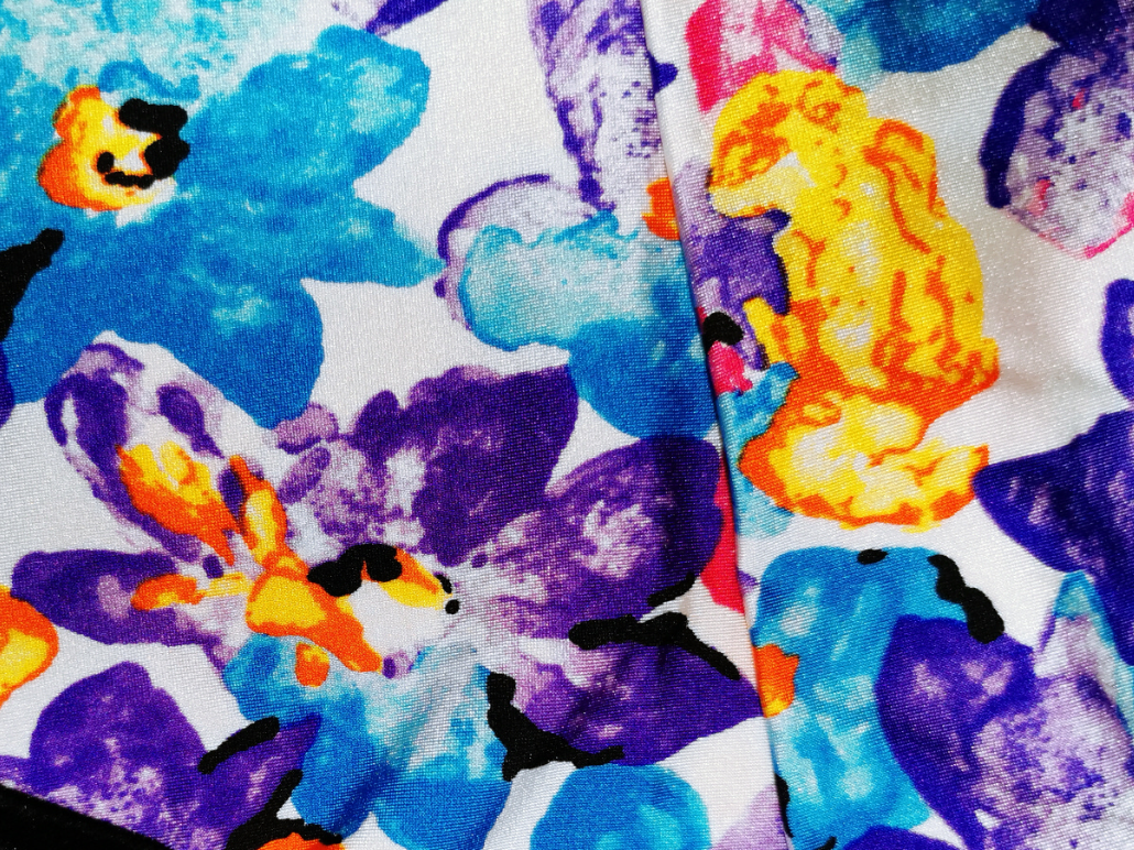 プリントの拡大写真 とても鮮やかな花柄のプリント。 生地の状態も良く、肌触りも最高だ。 |