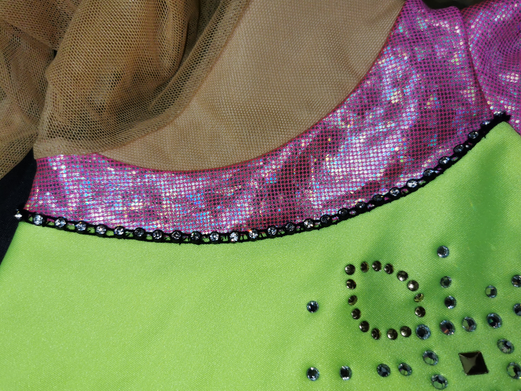 衝撃的な出来事であったし、あの「形状」には正直落胆しかなかった。 あれから20年以上が経過し、すっかり定番の形となったスカート付きレオタードだが、 未だにアレルギー的に拒んでしまう旧来ファンも居るのではないだろうか。 少なくとも私はそうだった。 そんな私がひょんな事からスカート付きを入手し、初めて気付いてしまった。この類のレオタードが持つ“半端ない背徳感”に。 こうしてスカート付きの魅力が少し分かったような気がして、某フリマサイトで購入したのがこの一着だ。 このレオタードはササキスポーツ2010年のカタログモデルで、ササキスポーツのイージーオーダーシステムであるオーダーコンポモデルである。 箔素材に、ラインストーンに、ダイヤブレードと呼ばれる装飾も付いていて相当コテコテになりそうな内容だが、 こんなに可愛らしくまとめあげたササキスポーツに今更ながら感心してしまった。 ちなみにこのサイズはJL(ジュニアL)であり、完全に観賞用として購入した。ジュニアサイズは取引価格が安めなのも嬉しい。 ところで価格と言えば、新体操用のレオタードは非常に高価なものが多く、このモデルもまともに購入したら定価が47,760円もするのだ。 これはラインストーンとダイヤブレードという装飾付きの価格であるが、これらを無しにしても19,950円もする。 新体操も中々お金が掛かる競技なのだと実感する。 この品番はJL~L2までサイズを揃えており、成人用のものが入手できるのなら一度着てみたいモデルである。 |