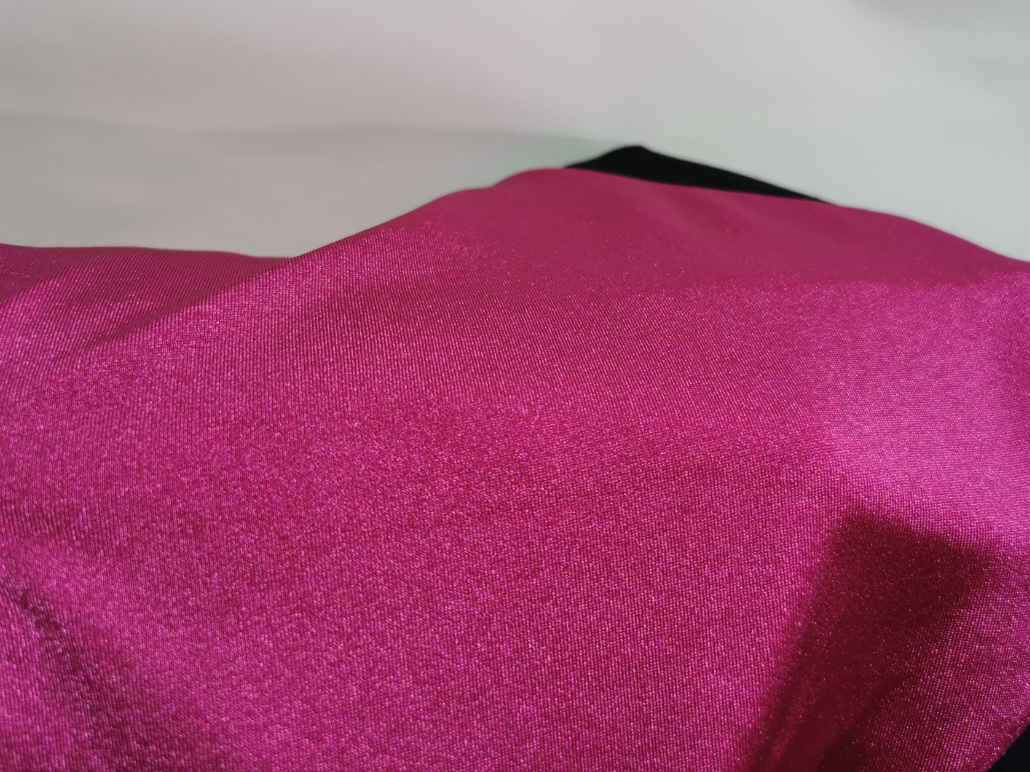 赤い生地の光沢感 袖部分の生地とはまた違った光沢感を持つ。 光沢と陰影のコントラストで深みのある色合いに映る。 肌触りも極めて上質だ。 |