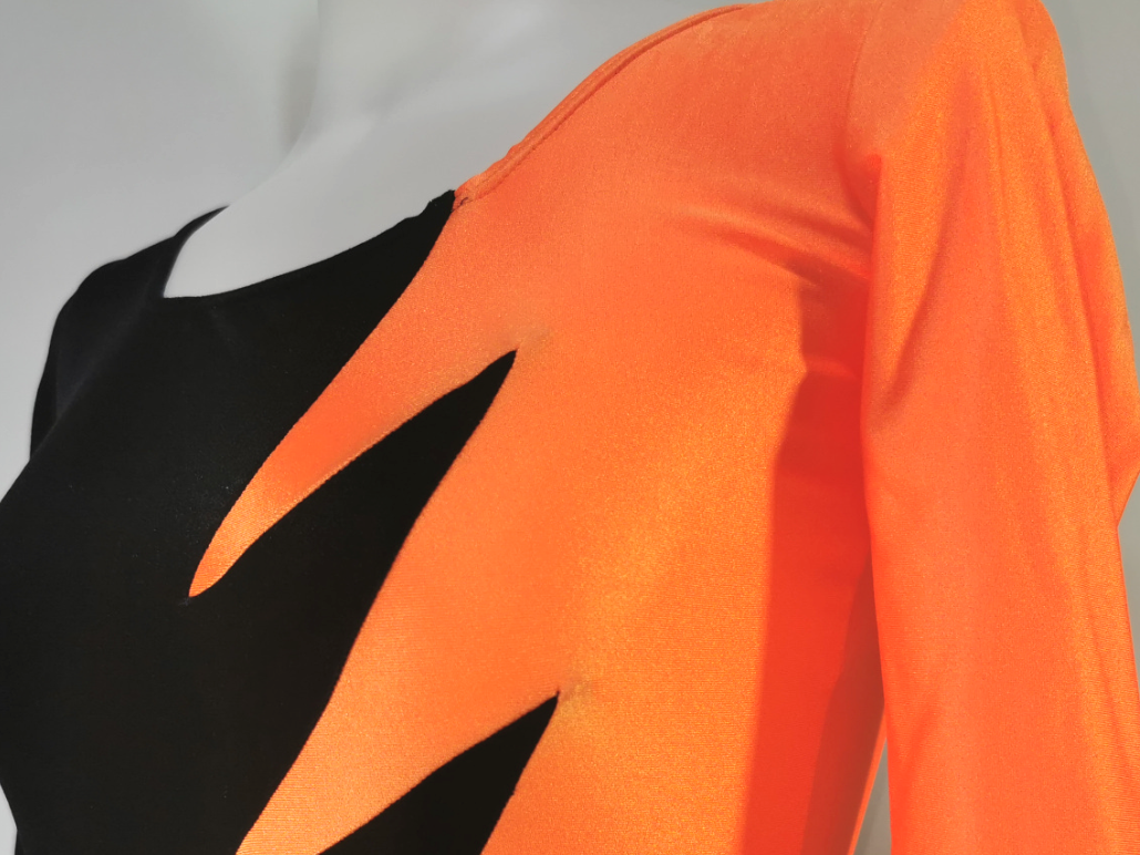 黒と蛍光オレンジのコントラストが印象的なこのレオタードは、このサイトの立上げ準備中(2022年頃)に購入した一着だ。