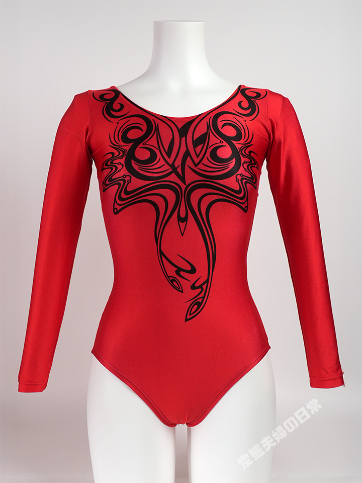 同じ絵柄を持つオールプリントモデルである。この二つのモデルを見比べて、カラー以外に違う点がある事に気付いただろうか。 #7159は襟ぐりと袖に白のラインが入っているのに対し、こちらはそのラインが省略されているのだ。 もしかしたら省略した方も品番のあるカタログモデルだったかもしれないが、確認できる資料が無かったため、 詳細不明のモデルとした。もし詳細をお知りの方がいたら、是非情報を寄せて頂きたい。 ところで上記の「襟ぐりと袖のライン」について、#7159では別のトリコット生地をあてがっている為、 厳密に言うと#7159はオールプリントモデルではない。 これに対し、それらが省略されたこちらは完全なオールプリントモデルで、 例えば袖の触り心地で言えばこちらに軍配が上がる。これはこれで「アリ」ではないか。 ただ、コンディションとしては中の下といったところで、何ヶ所か生地を引っ掛けたようなダメージがあり、 極小の穴が開いてしまっているところもある。 面白い一着だけに、そこだけが少々残念だ。 ※関連レオタード: #7159 ①、 #7159 ②、【同じプリント柄のレオタード】 |