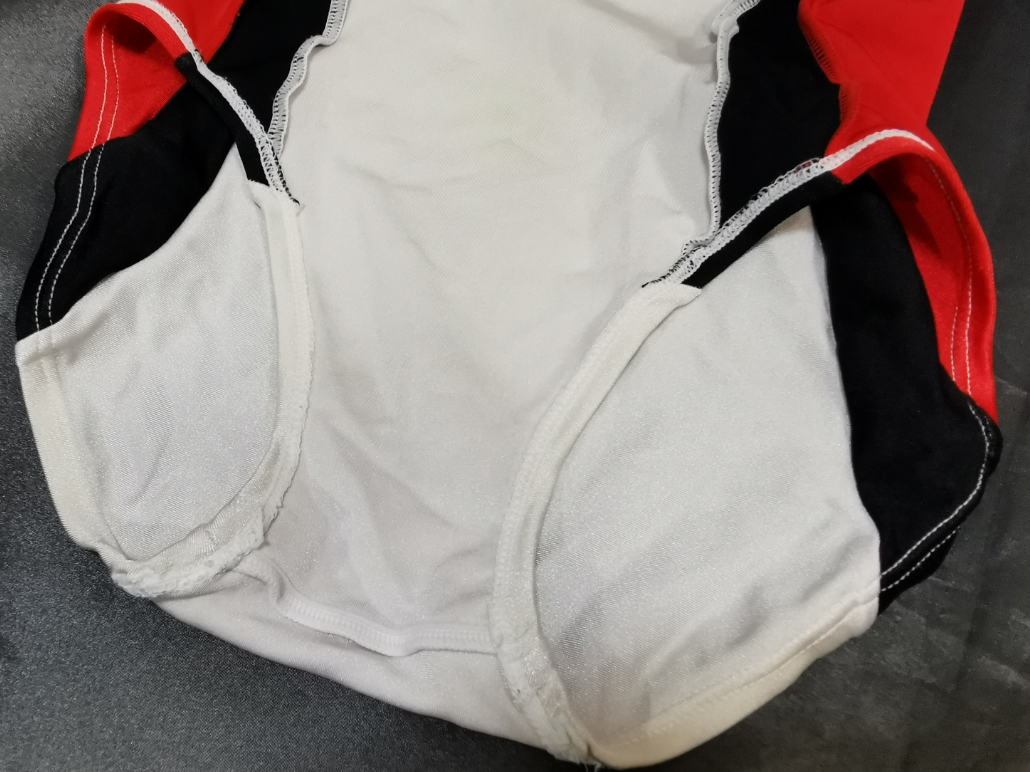 白色をベースに黒と赤の三色で構成されたシンプルなこのレオタードは、ミズノが手掛けたモデルである。 このレオタードは私の趣味で購入したものでは無く、オークションでまとめ買いした中に入っていたもので、偶然ウチに舞い込んできた一着だった。 ところが私はササキスポーツ#7222Gでも紹介した通り、 V字のデザインに対して「古臭くてダサい」イメージがあり、このモデルも入手当初はあまり好みで無かった。 希少なミズノ製のレオタードという事でコレクション入りとなったが、トルソーに着せてみると いかにも「ジャパン」という感じの配色と、絶妙な太さのラインが非常にマッチしている事に気付き、次第に「ダサカッコイイ感じ」にハマっていってしまった。 今では力強いV字のラインとサイドから腕へと伸びるラインがとても気に入っていて、コレクション入りして本当に良かったと感じている。 残念ながらこのモデルの登場時期は不明だが、デザインからして1980年代後半~1990年代初期のモデルではなかろうか。 生地は質の良いツーウェイトリコットで、このあたりはササキスポーツと変わらない印象だ。 無論、ミズノの縫製も非常に丁寧で、日本製の品質の高さを感じる。 強いて違いを挙げるなら、メーカーの違いによる僅かな着用感の差がある事くらいか。 |