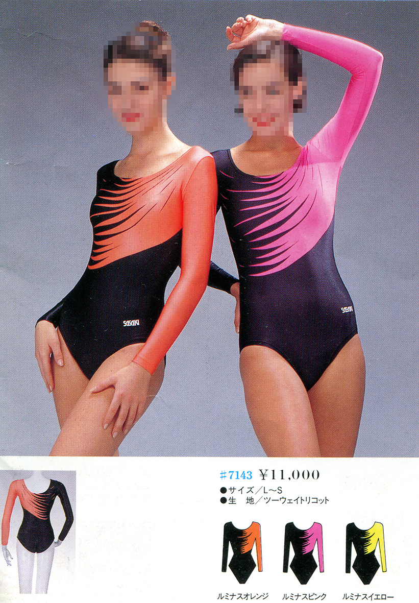 (ちなみにルミナスとは「光を発する」「輝く」という意味があり、ササキスポーツでは蛍光色を指す)更に、1992年モデルは菱形のマークがプリントされているのに対し、1993年モデルでは「SASAKI」のロゴに変更されているのも興味深い。 このモデルも薄くて伸びが良く、強光沢で、フェチ的目線で見ても非常に素晴らしいモデルと言える。 左腰に付いたササキスポーツのマークもしっかり残っており、保存価値の高い一着だ。 |