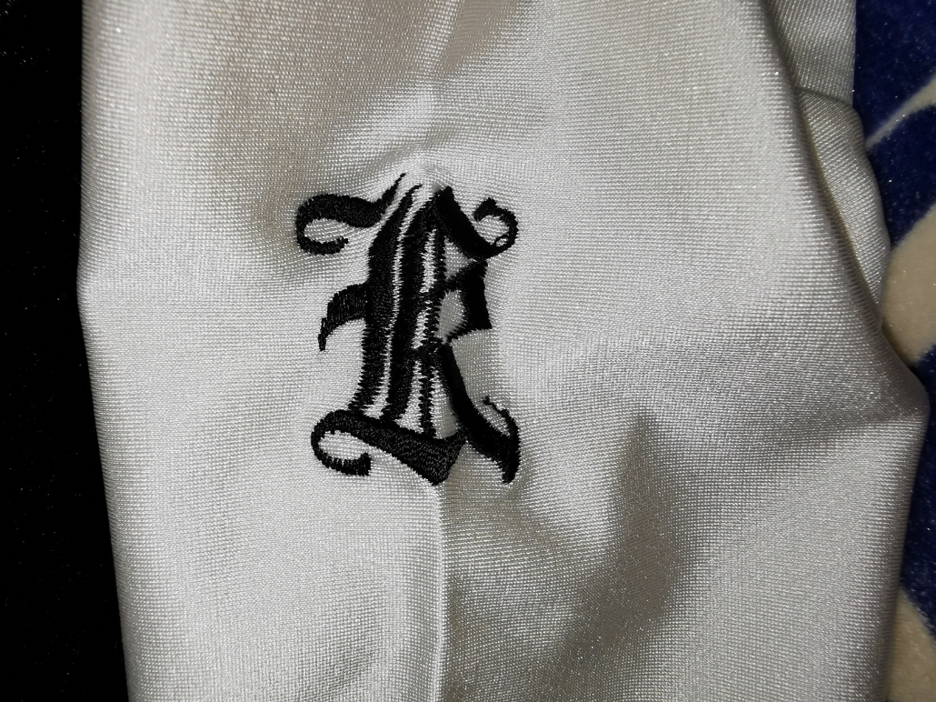 右腕に付くチームマーク この手のものはワッペンが多い印象があるが、これは直接生地に刺繍されている。 デザインされたフォントで、読み取れないのが残念。 |