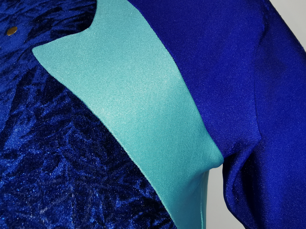 素材の劣化② ターコイズブルーの生地は「ツーウェイトリコット・箔素材(パウダー)」というもの。 ヌメリ感ある光沢が特徴だが、 この個体は箔が落ちて光沢が失われている。 本来の光沢は<コレクションS-12 >からどうぞ。