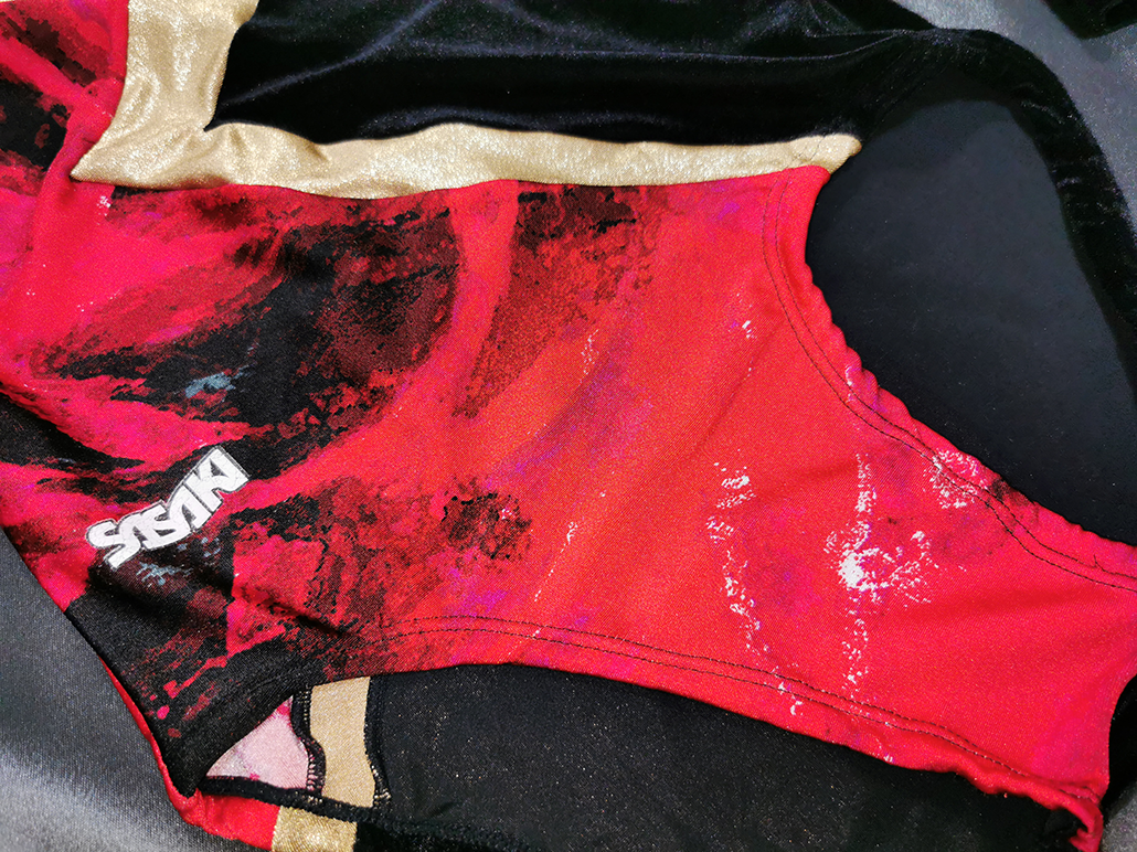 気付けば手元にこのモデルを迎えていた。手元に届いみると、赤いジュピターの柄にベロア黒色、そして箔素材の金色という色の組合せが実にマッチしていて、 大人っぽい香りがムンムンと漂ってくる。 そしてジュピターのグラフィックからはミステリアスで妖艶な雰囲気もあり、実に堪らないモデルである事に気付かされた。 あの時は見向きもしなかったのに、今は素直に「良い」と頷けるのだから人間不思議なものだ。 このレオタードにはどんな色や装飾の手具が似合うかなんて想像を膨らませながら、末永くこのモデルを愛でたいと思う。 |