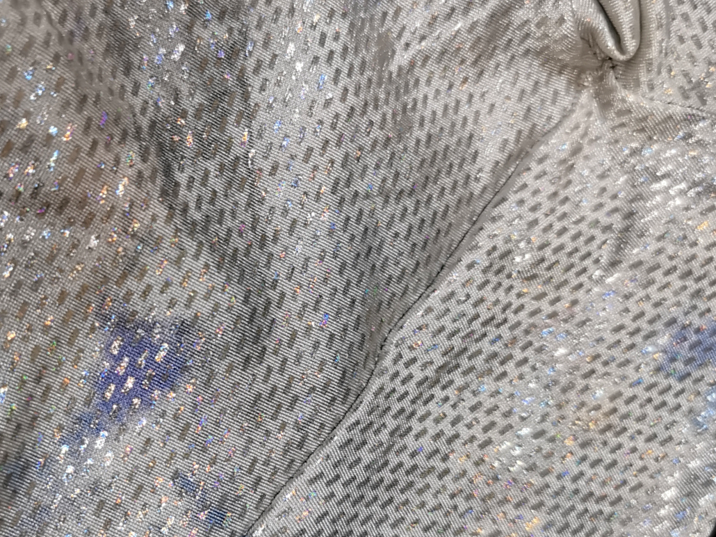 色移りの様子 洗濯の時に気を付けないと、このように色移りしてしまう。 下地が白なのでワンチャン漂白もアリかも?!・・・と頭を過ぎるが、実際は怖くて出来ない (漂白出来ても箔が剥がれる恐れがある) |