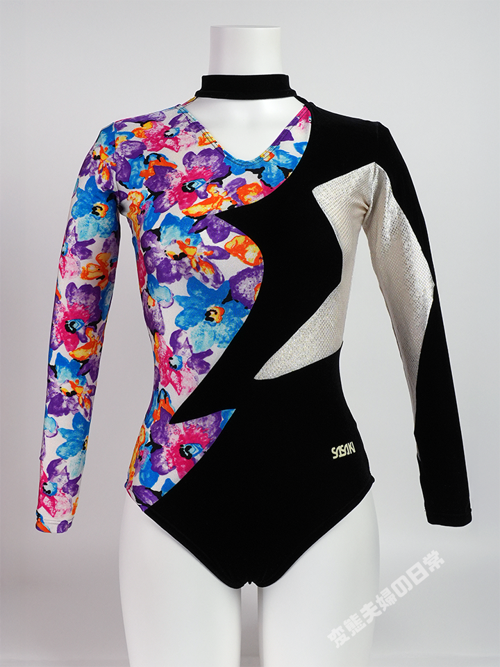 に続いて同じモデルの紹介となるが、どうかご容赦願いたい。先で紹介した通り、このレオタードはササキスポーツ2000年のカタログモデルで、花柄のプリント生地に切替えで黒のベロアを使用し、 そして箔素材をあしらったものである。 そして過去の思い出に重ね合わせたりと、ちょっぴり思い出深いモデルでもある。 実はこのモデル、この一着を含めると計4着も購入していたりする。 まず最初の一着目は発売当時の2000年に新品で購入した。 だが割とすぐに放出してしまい、それが後に拗らせる原因(?)となった(笑) 次の二着目はそれから10年くらい経った頃、程度の良い出物を見つけて購入した。 それが前頁の#7448 ①である。 ただしSサイズであったため、コレクション前提の購入だった。 ところが持っていると着てみたくなるのが着用派の哀しい性で、その欲に負けて購入したのが前頁の#7448 ②だ。 こちらはLサイズで着用に問題無かったものの、すぐに何か物足りない事に気付いた。 なんとこのモデルの特徴である襟部分が切り取られていたのだ! 完全に勢いで買ってしまったので、最初からそれに気付かずに買ってしまったのである。 それから数年経ち、ついにこの一着と出会った。 手元に届いてその状態に驚いた。正に“ミントコンディション”と呼べるほど素晴らしい状態だったのだ。 もうこれ以上のものは望めないだろう・・・このモデルを探す旅もようやく終わりを迎えられそうだ・・・ しかしカラーバリエーションがある事を忘れてはならない・・・(笑) |