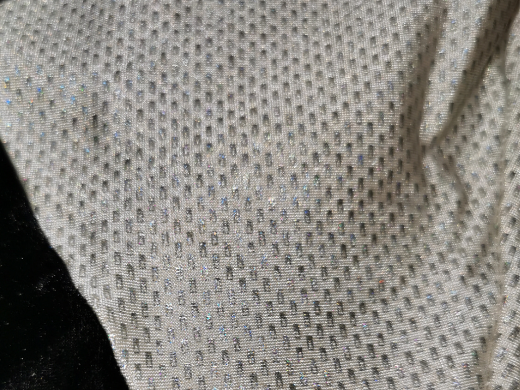 箔素材の拡大写真 畳み皺が残るものの、極めて状態の良い箔素材。 箔素材は着用や洗濯で劣化がしやすく、状態を保つのはなかなか難しい。 |