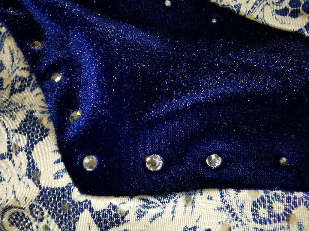 インディゴブルーのベロアが美しいこのレオタードは、ササキスポーツ2008年のカタログモデルである。 ササキスポーツはこのモデルを「一般用」、つまり用途を指定しないモデルとしてカタログに載せていたが、 既にこの頃の新体操はスカート付きが主流であり、実質このモデルは器械体操用と見て差し支えないと思う。 ところで2000年代の体操用レオタードと言えば、新体操と器械体操で形もデザインもはっきりと道が分かれた時代である。 前者にはスカートが付き、箔素材やラインストーンで煌びやかに仕上げたモデルが多かったのに対し、 後者は箔素材や装飾はアクセント程度に、ダーク系のベロアをメインとした落着きのあるモデルが多かった気がする。 このモデルも正にその流れを汲むデザインで、2000年代後半らしいデザインと言えるだろう。 そんなこのモデルの見どころは、肩口から左袖にかけて続く複雑で細かい柄のプリントだ。 一見レース素材に見えるこの部分は、実はレース調のプリントを施したプリント生地で、近くに寄ると実にリアルな描写がされているのに驚かされる。 その上にはドット状の箔素材が乗り、光沢に変化を与えている。 そして上品で滑らかな光沢のあるインディゴブルーのベロアとの相性も抜群で、絶妙な切替えも相まってシンプルでありながらエレガントな雰囲気が漂う。 さりげなく配置したラインストーンもとても効果的で、非常に魅力溢れる一着だ。 この個体は新品同様のタグ付きという非常に状態が良く、お気に入りの一着である。 難点と言えば、状態が良すぎて袖を通せないというところだろうか。 これを着こなせるモデルさんに袖を通して頂きたいと思う次第である。 |
