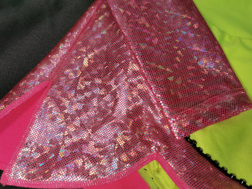 装飾の拡大写真 箔素材を縁取るように「ダイヤブレード」という装飾が付く。 なかなか凝った装飾で、縫い付けるにもかなり手間がかかるのではないだろうか。 |