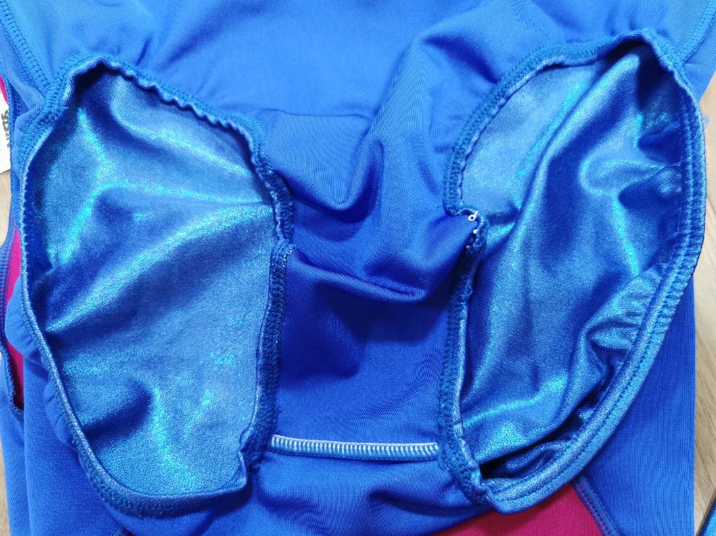 イージーオーダーシステムである「オーダーコンポ」扱いの商品である。 このレオタードの特徴は、何と言っても全て箔素材で構成された圧倒的光沢感である。 その光沢はツーウェイトリコット生地に施された砂状の箔素材によるもので、 従来は切替えやモチーフなどワンポイントで使われてきた素材だ。 これを全面で使用する事により、まるでメタリックを着るような輝きを手に入れた。 カタログでも説明されているがこの素材は伸びにくい性質があり、サイズ合わせがややシビアになった。 だが言い換えれば締め付けが強い素材でもあり、身体にピタピタっと張り付く感じは通常のトリコット生地では決して味わう事が出来ないものだ。 その質感はヌメっとしたもので、艶やかで、なまめかしい姿を映しだす。 ところで、従来のササキスポーツのレオタードは足口の調整にゴムが入替えられるようになっていたが、この頃からゴムが本体に直接縫いつけられ、 基本的にゴムの交換が出来ない仕様になった。ササキスポーツのレオタードが新しいフェーズに入ったとも言える出来事だ。 このモデルも製造から十年以上経過し、今後箔素材やゴムの劣化が懸念される。 可能であればオーダーでもう一着入手したいところである。 |