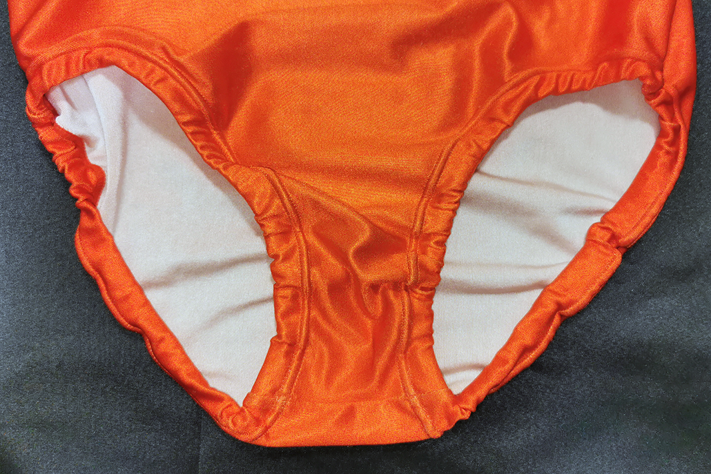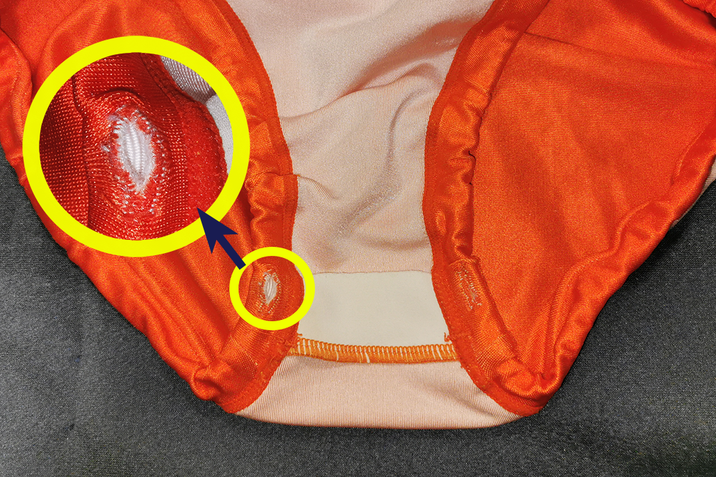 ササキスポーツに限らず、多くのレオタードで足口のゴム調整が出来るようになっています。