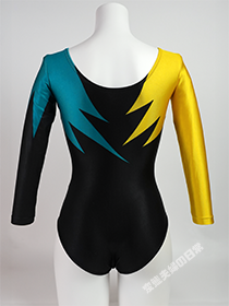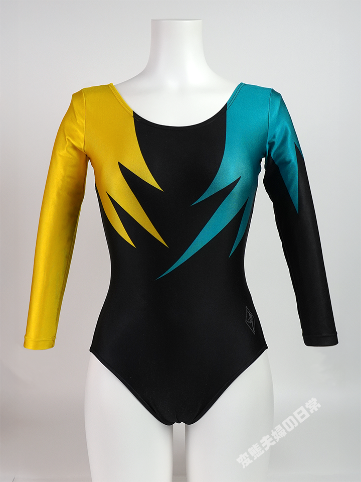 切替えデザインのレオタードは、それぞれの色の生地を縫い合わせて仕立てるのがオーソドックスだが、