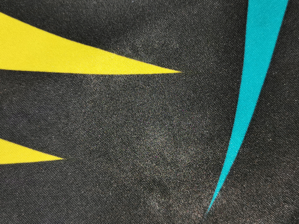 切替え部分のアップ プリントになっているので、色の境目はシームレス。 見た目もシャープである上に、縫目のない自然な着心地も与える。 |