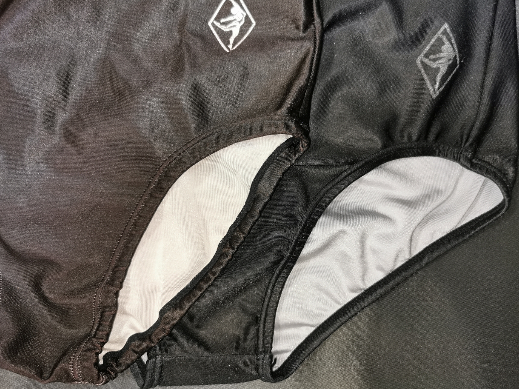 脚ぐりのゴムに注目 左が比較対象で用いたコレクション#7143で、右が今回紹介するレオタード。 左はゴムを通すための袋状であるのに対し、右は生地とゴムが一緒に縫合されている。 近年の器械体操モデルに見られる形状だが、オールドモデルでも存在していたのが驚きだ。 基本的にゴム交換が出来ないので、劣化が心配だ。 |
