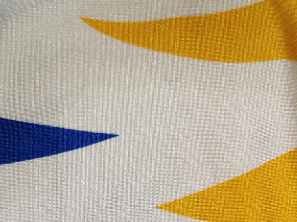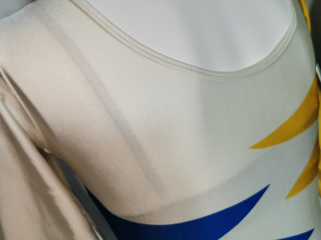 白色と黄色の部分は光沢が強めで見るからに触り心地の良い艶をしているのに対し、青色の部分はややマットな感じだ。着用すると薄い生地がピタピタっと身体に張り付き、スベスベとした生地に一気に興奮が高まる。 締め付けはそこまで強くないが、それでも通常のツーウェイトリコット生地よりも若干タイトに感じられる。 このモデルの詳細は不明だが、これも80年代末期~90年代初期のものだろうか。 オークションでもこの時代のモデルを見掛けなくなった気がする。 ましてや、このような淡色系モデルは本当に貴重だと思う。 この個体にはゼッケンを留めた小さな穴が開いていたりと、ダメージも見られるが、当時の雰囲気が感じられる一着として大切にしたい。 |