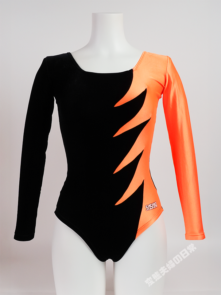 黒と蛍光オレンジのコントラストが印象的なこのレオタードは、このサイトの立上げ準備中(2022年頃)に購入した一着だ。