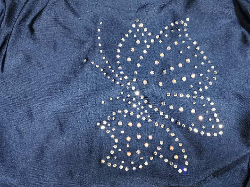 ラインストーンによる蝶のモチーフが付いたこのレオタードは、オークションでまとめ買いした中に入っていた一着だ。